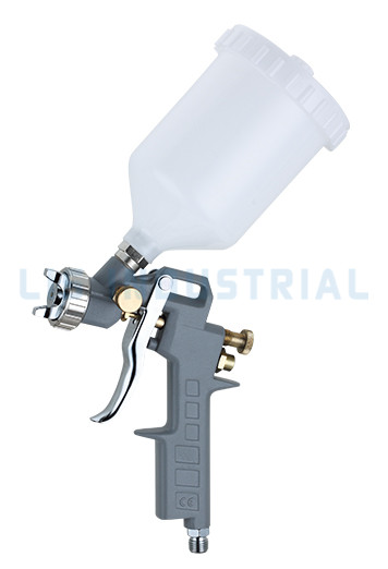 voylett sprutpistol . Dess finfördelningsförmåga gör att den kan finfördela även de svåraste beläggningarna. Med ett lufttryck på 0,1 till 10 PSI vid luftlocket applicerar denna sprutpistol färg snabbare. Dess höga lufttryck hjälper till att minska översprutningsföroreningar och det minskar materialspill. Dessutom innebär den mjukare sprayen mindre dropp och mindre röra.